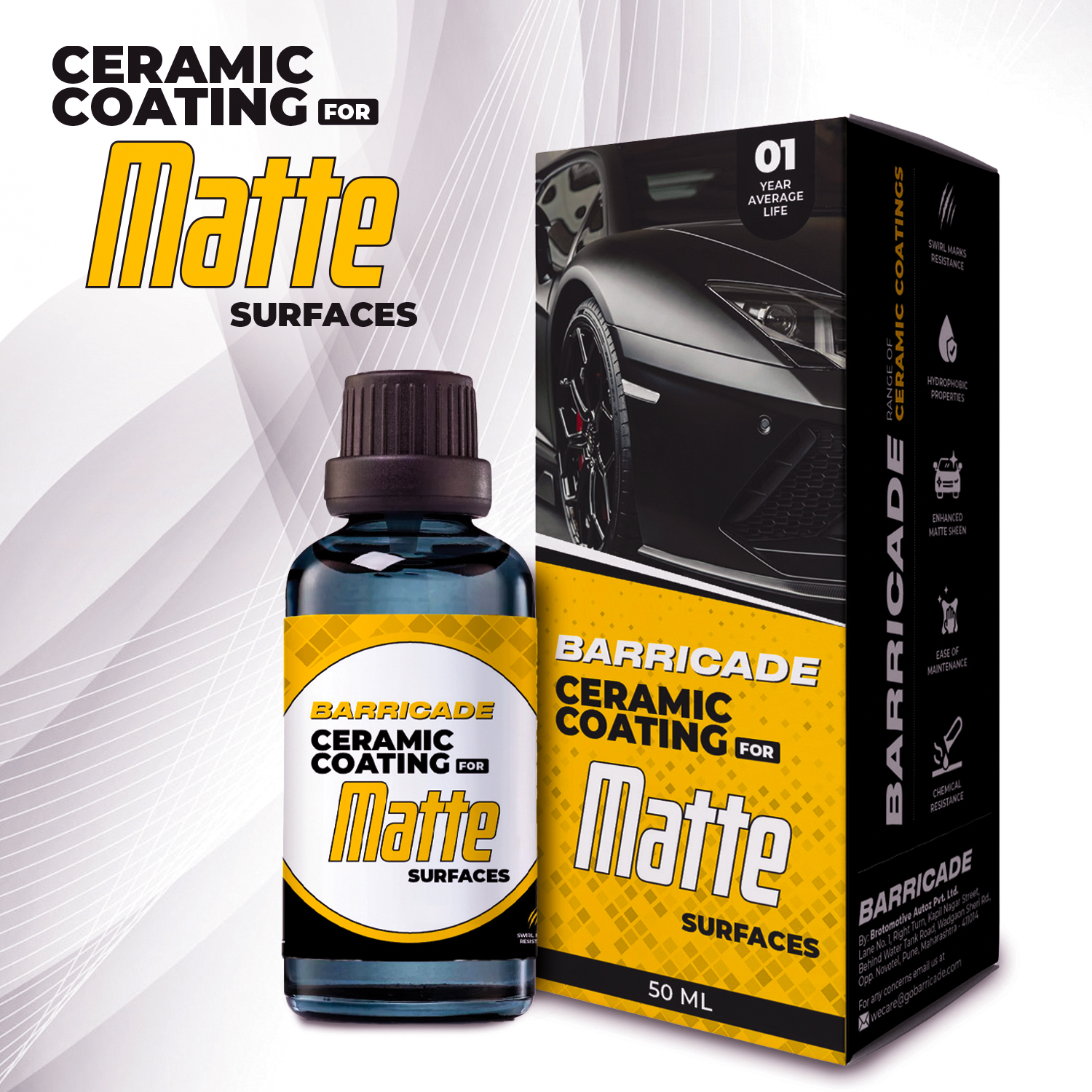 Hydrophobic Technology: Barricade coatings have excellent water-repelling properties, allowing water and dirt to slide off easily and making washing and maintaining your car easy.